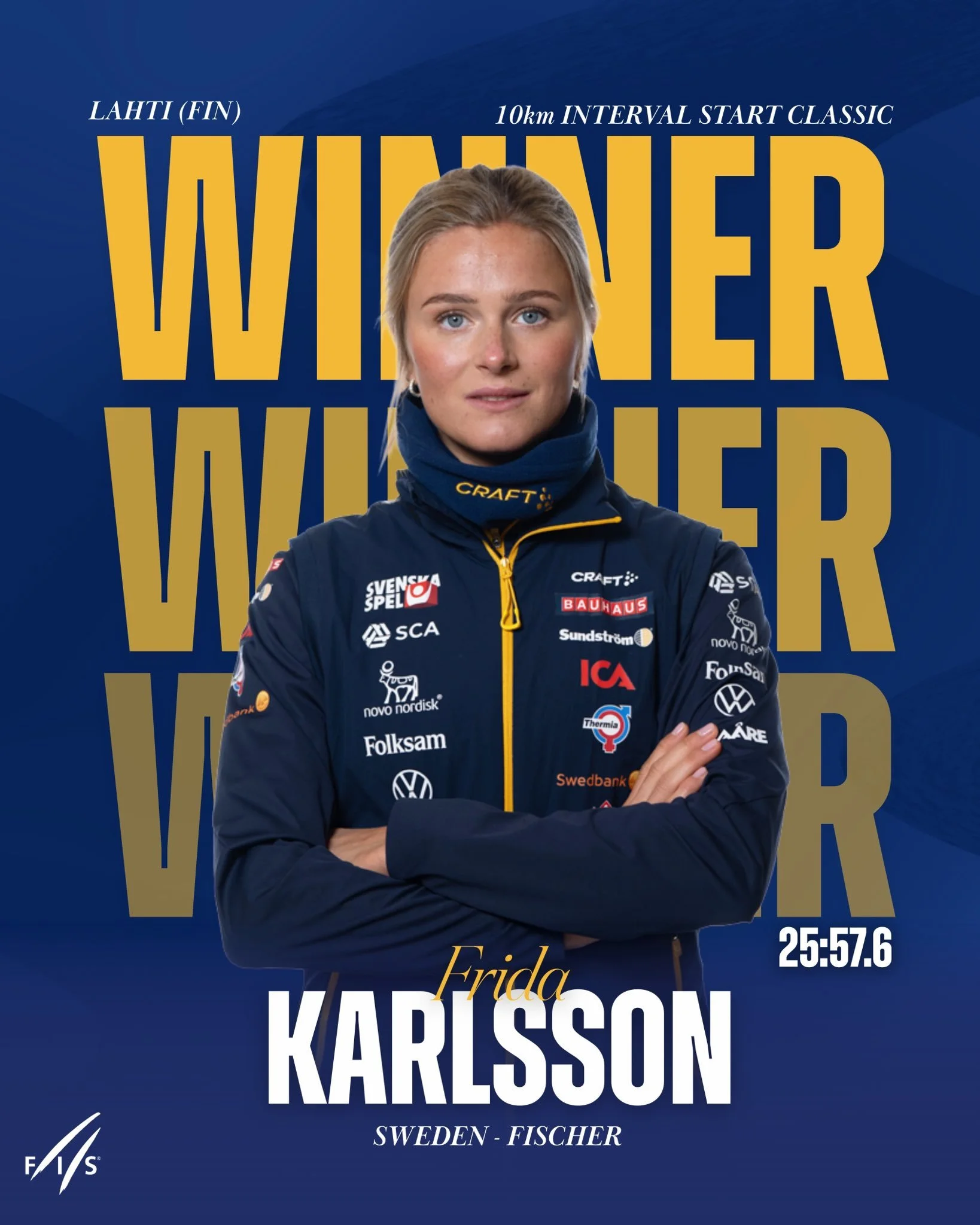 Lahti stands as one of the true proving grounds of cross-country skiing — a place where tradition, atmosphere, and unforgiving courses come together to test the very best in the world. This year delivered exactly that. In the skate sprint, Jonna Sundling unleashed her secret weapon — that flawless V2 — and simply broke the race apart for a commanding victory. On the men’s side, Johannes Høsflot Klæbo reminded everyone who still leads the pack, holding off the charging Heggen in a thrilling showdown. The 10 km interval classic races brought their own drama: a Swedish duel where Frida Karlsson grew stronger with every kilometer to claim the win with composed authority, while in the men’s race Klæbo once again showed that no one “does winning” quite like him — not even classic master Martin Løwstrøm Nyenget or rising star Savelii Korostelev could respond to his decisive move. With that, Klæbo sealed a perfect season and his sixth overall globe, while Korostelev celebrated a breakthrough first World Cup podium.
