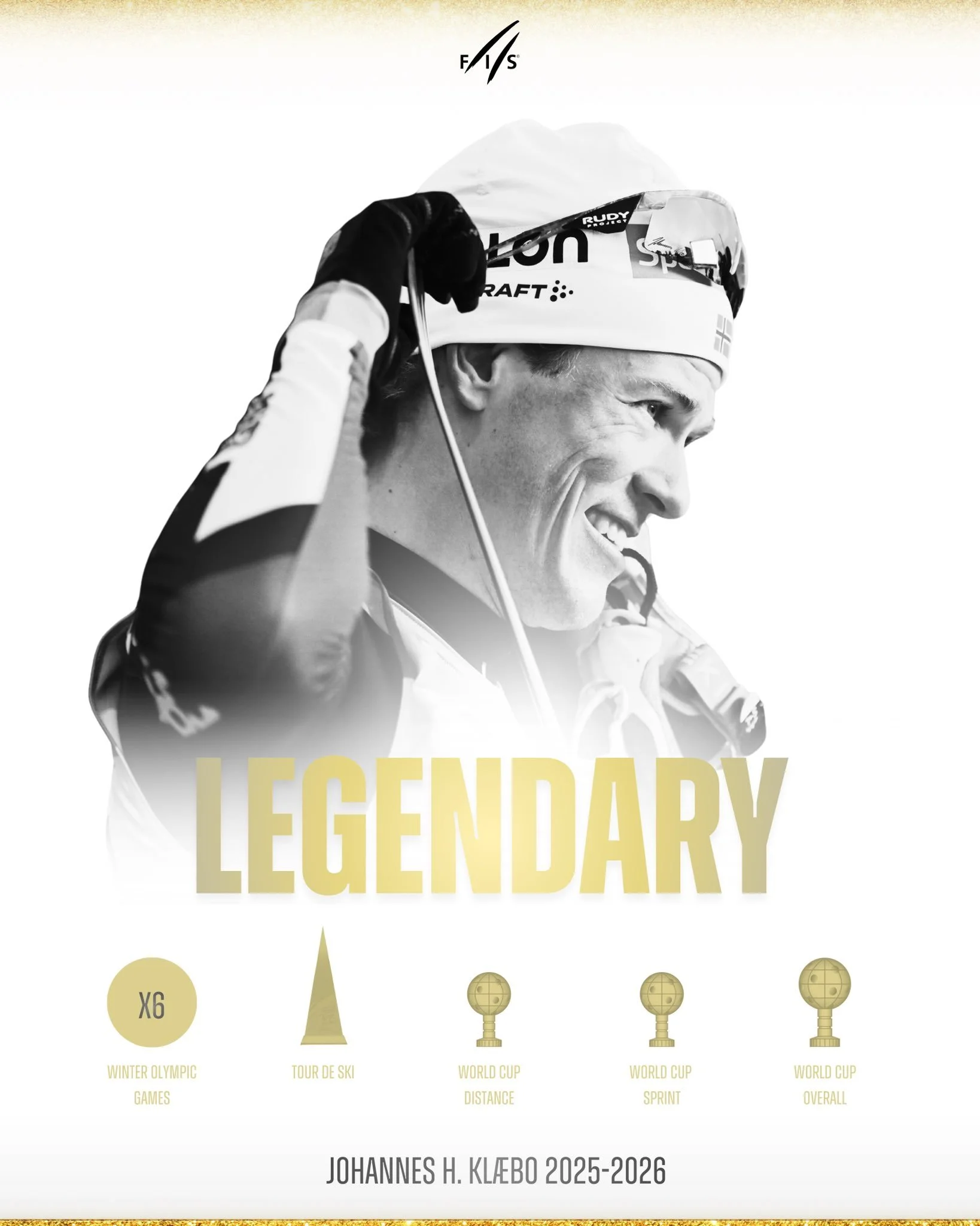 Sunday’s 20 km mass start skate turned cold and rainy — a fittingly hard finale. Klæbo led from the front to cap off a historic season — a true GOAT— while Jonna Sundling closed her season with one last win. But at the center of it all was Jessie Diggins and her farewell. Three Crystal Globes in a row. Four in total. Her final race, at home. Thank you, Jessie.